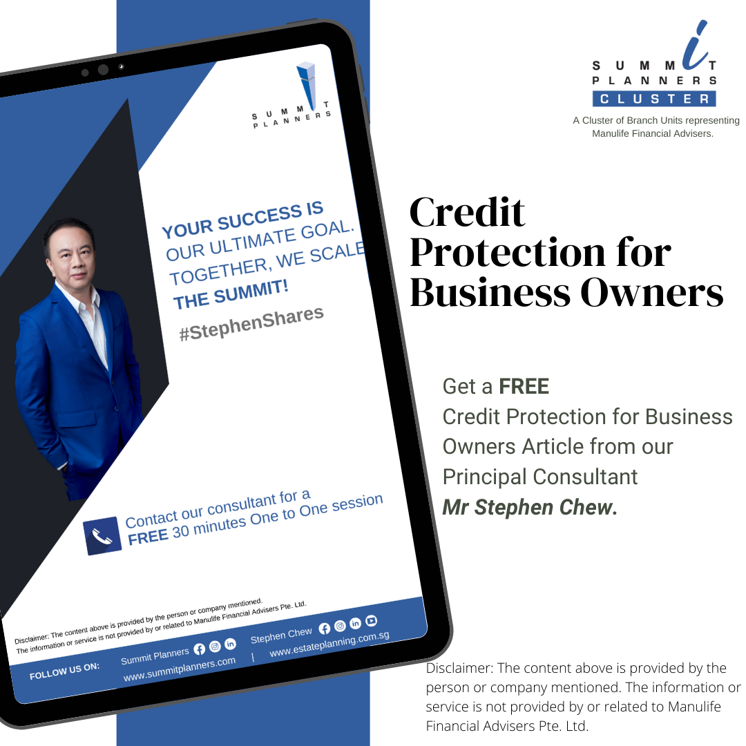By submitting this form, I consent to a Financial Services Consultant of Summit Planners Cluster, a cluster of branch units representing Manulife Financial Advisers Pte. Ltd. (“Manulife FA”), to contact me (even though my telephone number is already registered on the National Do Not Call Registry) for marketing purposes, and provide me with marketing, advertising and promotional information, materials and/or documents relating to products and services marketed by Manulife FA. The consent I provide is in addition to and does not supersede, vary or nullify any consent which I may have provided previously in respect of the above purposes, unless my consent is withdrawn. I confirm that I am the user and/or subscriber of the telephone number or email provided by me.